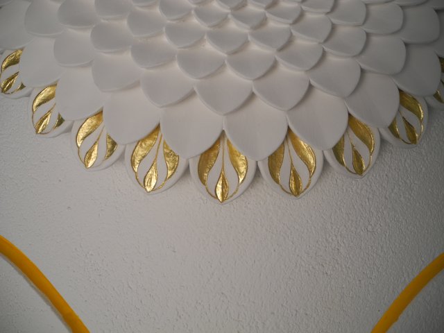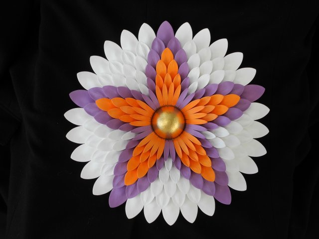 Das Mandala hat einen Durchmesser von 30 cm und ist aus 180 einzelnen Blättern zusammengefügt.