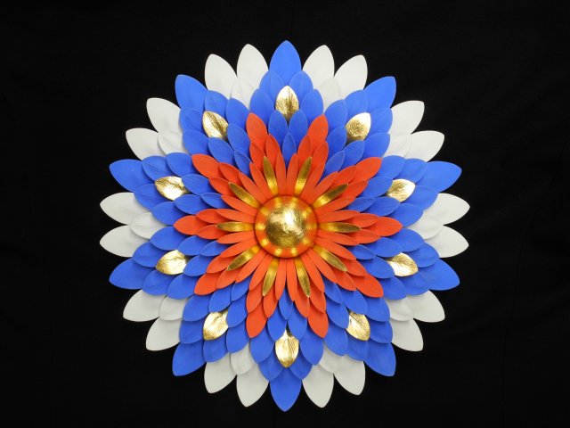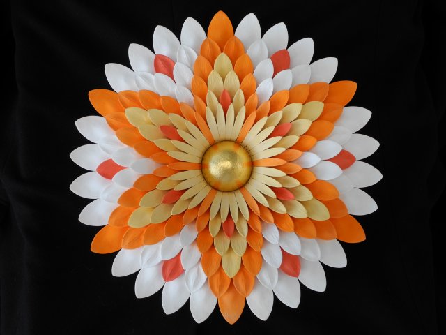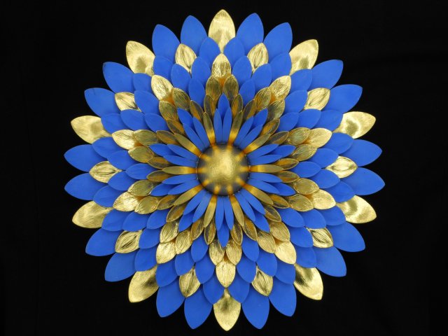 Das Mandala hat einen Durchmesser von 30 cm und ist aus 180 einzelnen Blättern zusammengefügt.